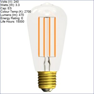 BELL 3.3W LED FILAMENT SQUIRREL CAGE CLEAR ES 2700K NON-DIM