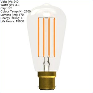 BELL 3.3W LED FILAMENT SQUIRREL CAGE CLEAR DIMMABLE BC 2700K