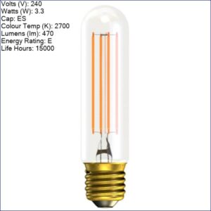 B60817 | BELL 3.3W LED VINTAGE TUBULAR ES L130mm NON-DIM AMBER 2200K