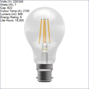 B60958 | BELL GENESIS LED 7W FILAMENT CLEAR GLS BC 2700K NON-DIM 806LM