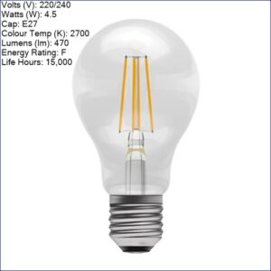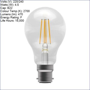 B60963 | BELL GENESIS LED 4.5W FILAMENT CLEAR GLS BC 2700K NON-DIM 470LM