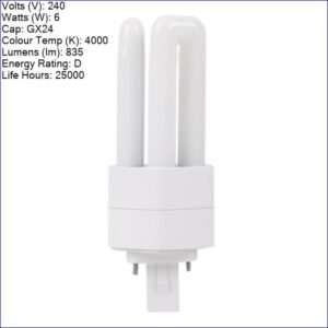 BELL LED 6W GLASS BLT 2 PIN BYPASS GX24 4000K 835LM (CFL 18W = LED 6W)