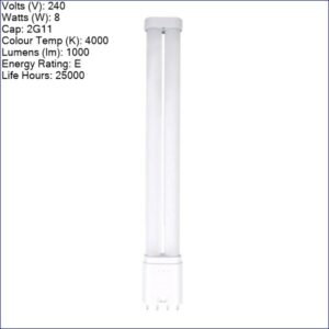 BELL LED 8W GLASS BLL 4 PIN BYPASS 2G11 4000K 1000LM (CFL 18W = LED 8W)