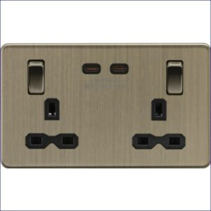 MLSFR9965AB | KNIGHTSBRIDGE 2 GANG 13A SWITCHED PLUG SOCKET WITH FAST CHARGE DUAL USB C SOCKETS ANTIQUE BRASS