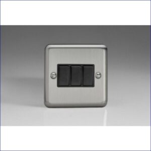 38XS3B | VARILIGHT MATT CHROME BLACK INSERT 3-GANG 10A 1-WAY OR 2-WAY ROCKER SWITCH