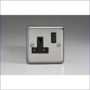 38XS4B | VARILIGHT MATT CHROME BLACK 1-GANG 13A DOUBLE POLE SWITCHED SOCKET