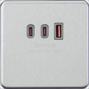 MLSF63WBCG | KNIGHTSBRIDGE FAST CHARGE TRIPLE USB CHARGER SOCKET PLATE BRUSHED CHROME