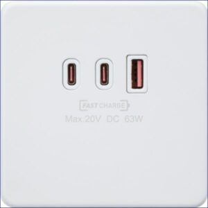 MLSF63WMW | KNIGHTSBRIDGE FAST CHARGE TRIPLE USB CHARGER SOCKET PLATE MATT WHITE