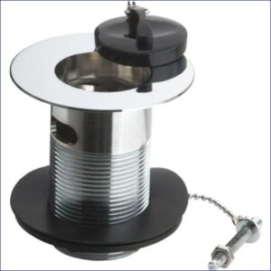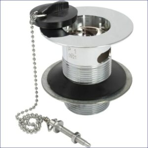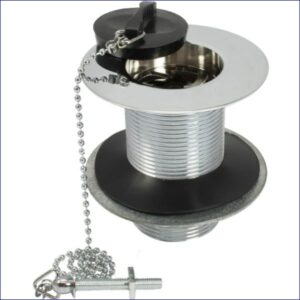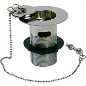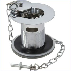 43EP201399 | PEERLESS SINK WASTE ‘LONDON’ SOLID 1.1/2″ (PLASTIC BACKNUT, BRASS PLUG, BALL CHAIN & STAY) CHROME PLATED