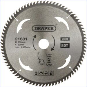 DR21681 | DRAPER TCT Circular Saw Blade for Wood, 250 x 30mm, 80T