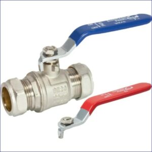62EP305782 | EMBRASS LEVER BALL VALVE BLUE HANDLE WITH RED AND BLUE HANDLE 22mm WRAS