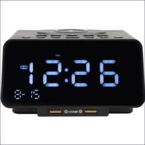 COR26689 | CORBY OF WINDSOR REGENT ALARM CLOCK IN BLACK WITH USB AND WIRELESS CHARGING