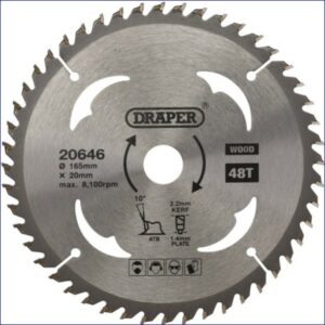 DR20646 | DRAPER TCT Circular Saw Blade for Wood, 165 x 20mm, 48T