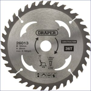 DR26013 | DRAPER TCT Cordless Construction Circular Saw Blade for Wood & Composites, 165 x 20mm, 36T