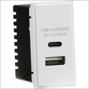 MLNETUSBCWH | KNIGHTSBRIDGE DUAL USB A+C CHARGER OUTLET EURO MODULE 25 x 50mm WHITE