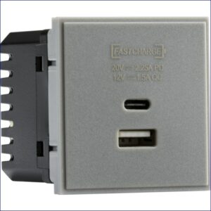 MLNETUSBPDGY | KNIGHTSBRIDGE FAST CHARGE DUAL USB A+C CHARGER OUTLET EURO MODULE 50 x 50mm GREY