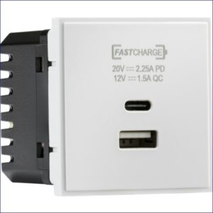 MLNETUSBPDWH | KNIGHTSBRIDGE FAST CHARGE DUAL USB A+C CHARGER OUTLET EURO MODULE 50 x 50mm WHITE