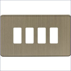 MLGDSF004AB | KNIGHTSBRIDGE SCREWLESS 4 GANG GRID FACEPLATE ANTIQUE BRASS