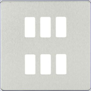 MLGDSF006BC | KNIGHTSBRIDGE SCREWLESS 6 GANG GRID FACEPLATE BRUSHED CHROME