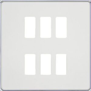 MLGDSF006PC | KNIGHTSBRIDGE SCREWLESS 6 GANG GRID FACEPLATE POLISHED CHROME