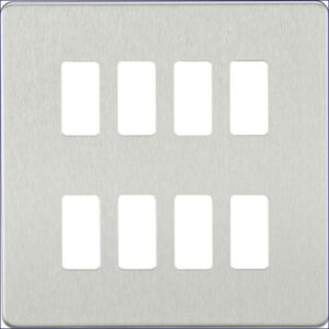 MLGDSF008BC | KNIGHTSBRIDGE SCREWLESS 8 GANG GRID FACEPLATE BRUSHED CHROME