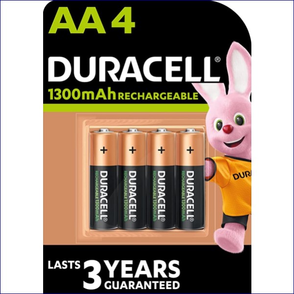 - Duracell rechargeable AA 1300 mAh batteries stay charged for up to 12 months, when not in use