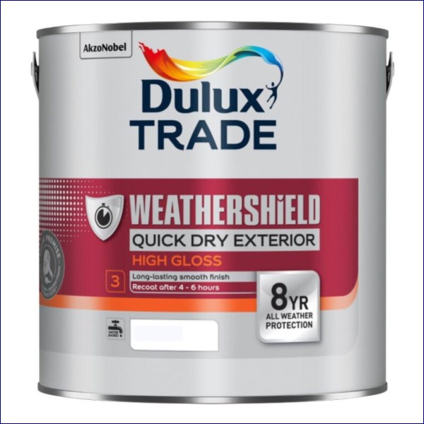 14AE0168001J | DULUX TRADE WEATHERSHIELD EXTERIOR QUICK DRYING HIGH GLOSS WATER BASED PURE BRILLIANT WHITE 2.5L