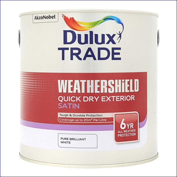 14AE016905J | DULUX TRADE WEATHERSHIELD EXTERIOR QUICK DRYING SATIN WATER BASED PURE BRILLIANT WHITE 2.5L