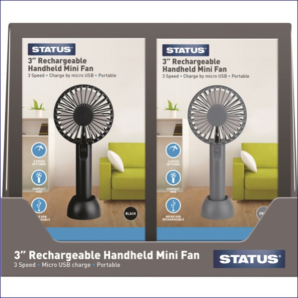 18HANDFAN | STATUS 3” HAND HELD MINI FAN 5 X BLACK 5 X GREY RECHARGEABLE IN COLOUR CDU 10 PIECES (MIXRHHFANSX10)
