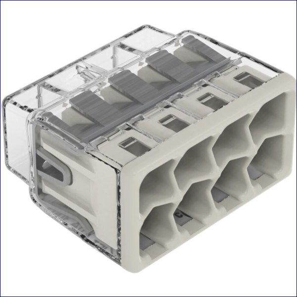 Enjoy fault-free electrical installations with push wire® splicing connector (item number 2773-408). Quickly and securely connect conductors in any building installation with WAGO’s 2773 Series PUSH WIRE® connectors, designed for both surface and flush-mounted junction boxes. Whether you intend to use them in private or commercial applications, this series of PUSH WIRE® connectors for junction boxes ensures simple and time-saving installations. Ensure that the strip lengths are 13 mm when connecting conductors to push wire® splicing connector. Our splicing connector is rated for 450 V and is designed for use with a rated current of up to 32 A. It can therefore be used in high-load applications. This product features conductor terminals and utilizes PUSH WIRE®. Our PUSH WIRE® connection uses the stiffness of the conductor to overcome the clamping spring’s contact force, allowing you to clamp the conductor in place more quickly and easily. The dimensions are (21.2 x 11.3 x 18.6) mm (width x height x depth). Depending on the type of conductor, push wire® splicing connector is designed for conductor cross sections ranging from 0.75 mm² to 4 mm².