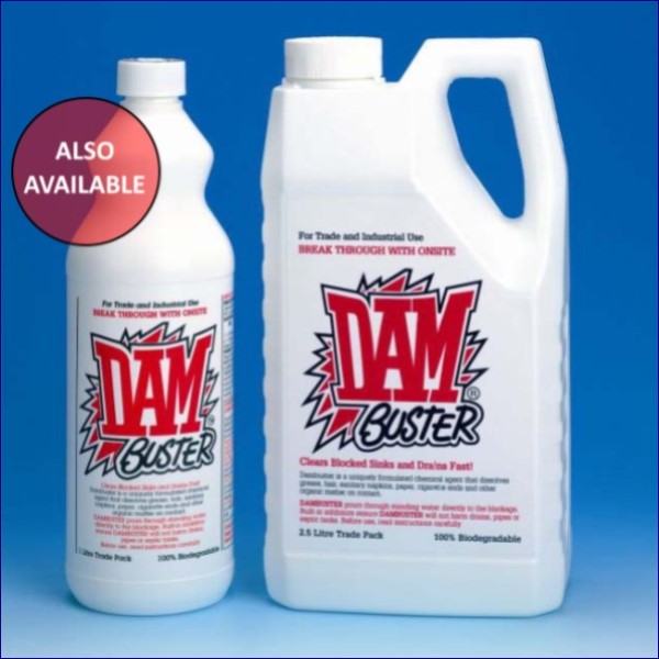 DAMBUSTER is recognised as the leading internal and external drain unblocker, drain cleaner, drain opener or drain clearer on the market. Given its unique formulation, it requires significantly less dosage, thereby cost saving in its use and there is no need to rod the drain.