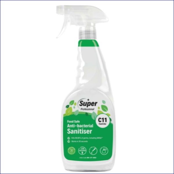 SUPER PROFESSIONAL C11 FOOD SAFE ANTI-BACTERIAL SANITISER 6 X 750ml 800-277-0002