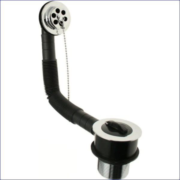 Enflow pattern with brass body and plastic backnut, 70mm flange, variflex 220mm x 550mm tube.18†No. 6 ball chain and chrome ABS bath face unless stated. Packed per single box.