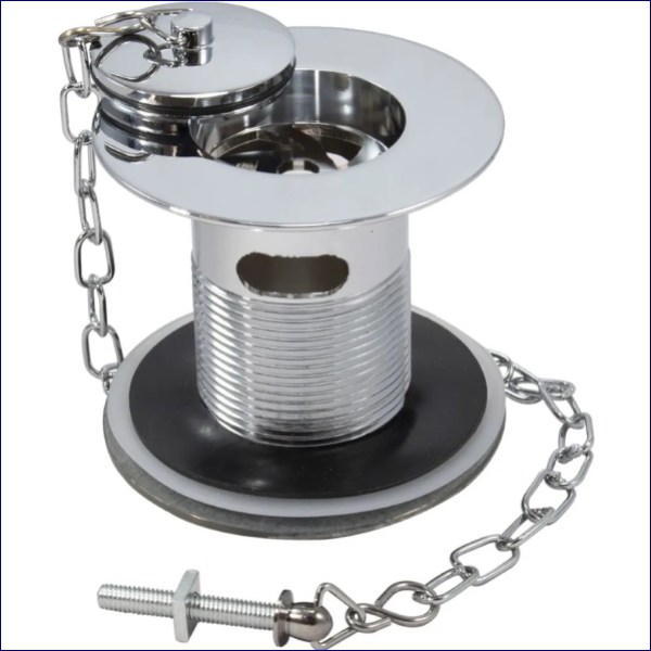 43EP201376 | PEERLESS SINK WASTE ‘BELFAST’ SLOTTED 1.1/2″ (METAL BACKNUT, BRASS PLUG, BRAZED LINK CHAIN) CHROME PLATED