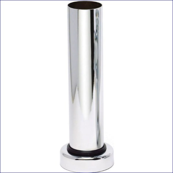 Chrome plated metal outlet pipe with wall flange. 35mm o/d pipe for use with 1 1/4†bottle trap