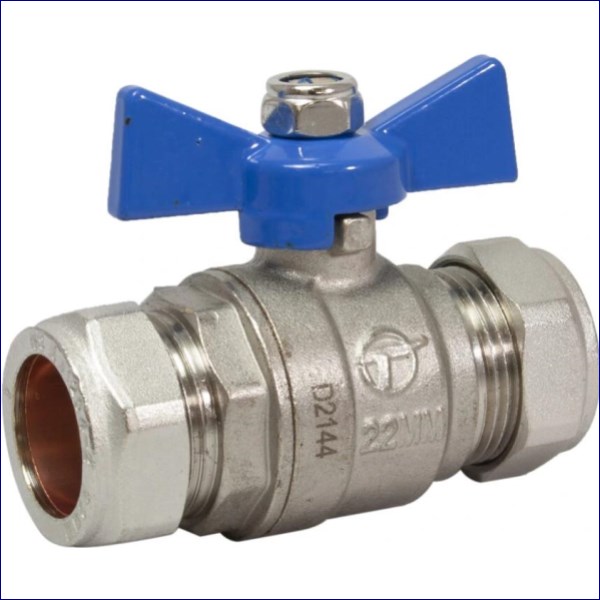 EP BUTTERFLY BALL VALVE BLUE HANDLE 22mm FULL BORE