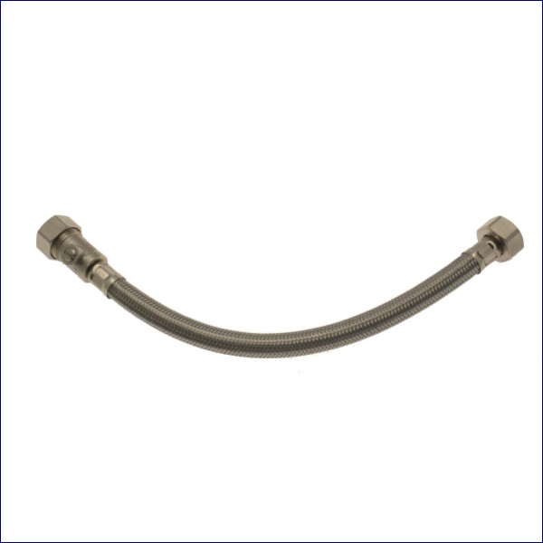 FLEXIBLE TAP CONNECTOR & ISO VALVE 15mm x 1/2in x 300mm WRAS