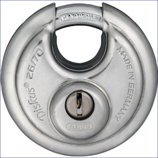 This ABUS 26/70 Diskus® Padlock is supplied with 2 keys.