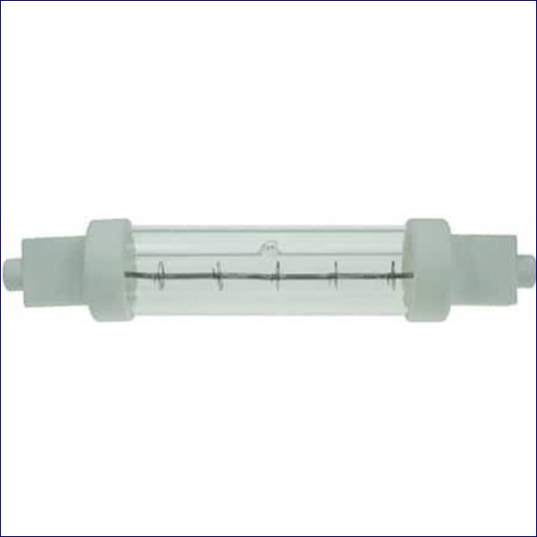 - Tungsten filament surrounded by a halogen gas encapsulated in a transparent quartz glass tube.
