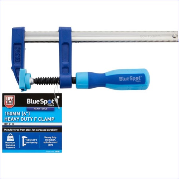 The BlueSpot Tools Heavy-Duty F-Clamp is manufactured from steel for increased durability. With a heavy-duty steel bar, spindles and jaws. Fitted with a soft grip handle for increased comfort.