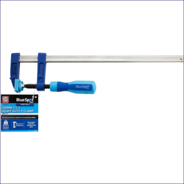 The BlueSpot Tools Heavy-Duty F-Clamp is manufactured from steel for increased durability. With a heavy-duty steel bar, spindles and jaws. Fitted with a soft grip handle for increased comfort.