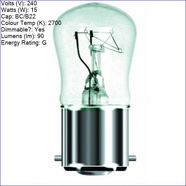 B02530 | BELL 15W SMALL SIGN (PYGMY) CLEAR BC DIMMABLE 2700K