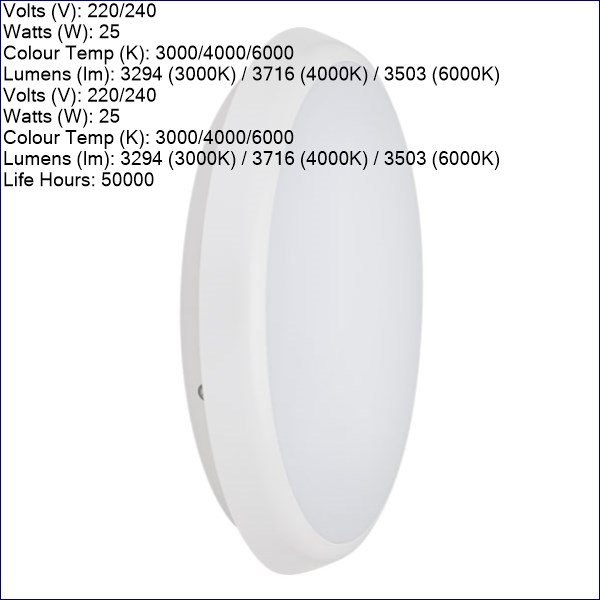 B06829 | BELL 25W DECO SLIM LED BULKHEAD CCT SENSOR EMERGENCY – 300mm DIAMETER