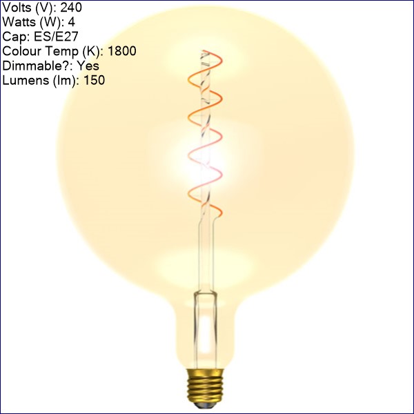B60023 | BELL 4W LED Vintage Soft Coil 200mm Globe Dimmable – ES, Amber, 1800K
