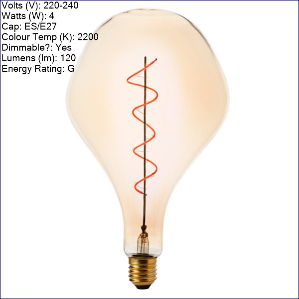 B60220 | BELL 4W LED CR190 VINTAGE SOFT COIL BUBBLE ES AMBER DIMMABLE 1800K