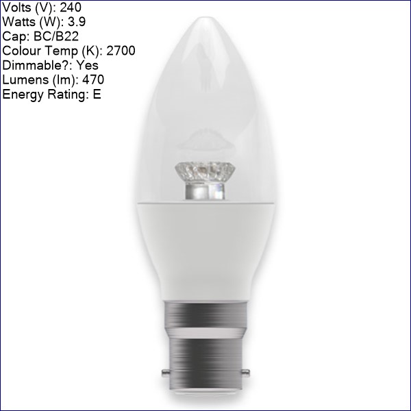 B60574 | BELL 3.9W LED Dimmable Candle Clear – BC, 2700K