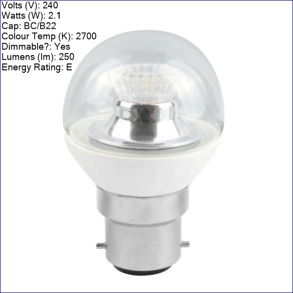 B60578 | BELL 2.1W LED Dimmable Round Ball Clear – BC, 2700K