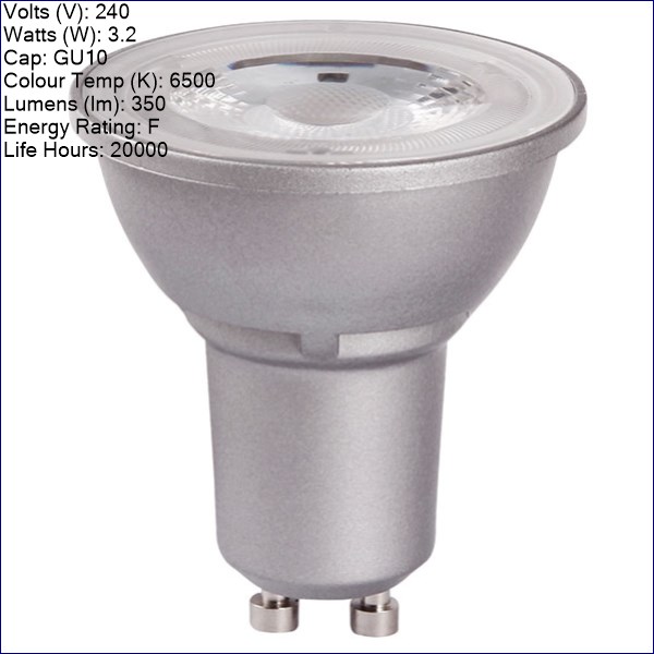 - Name: Halo 3.2W LED Dimmable GU10 – 60° Beam – 6500K
