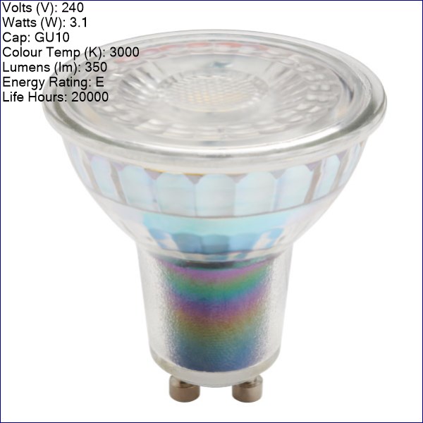 - Name: Halo Glass 3.1W LED Non-Dimmable GU10 – 3000K