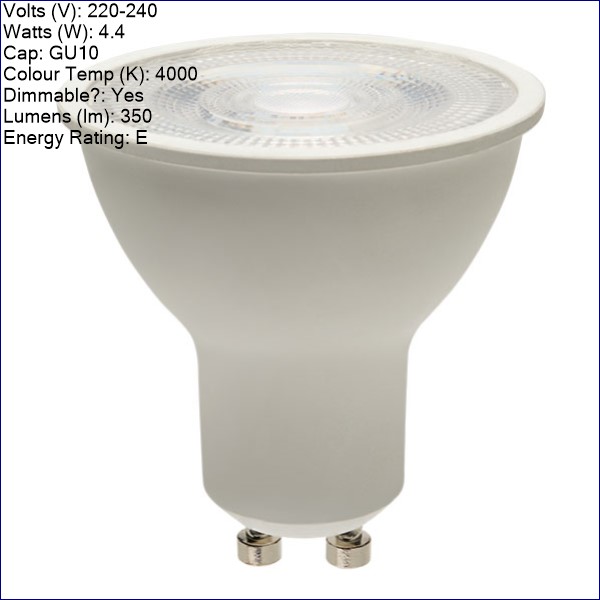 B60675 | SCREWMATCH 4.4W GENESIS GU10 DIMMABLE 4000K 350LM (10 PACK) 463PP